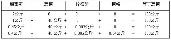 Note: The maximum usage is calculated based on cyclohexylaminosulfonic acid (14.0 solid beverages and 16.01 jelly powder are increased by dilution and blending times of 0.65g/kg).